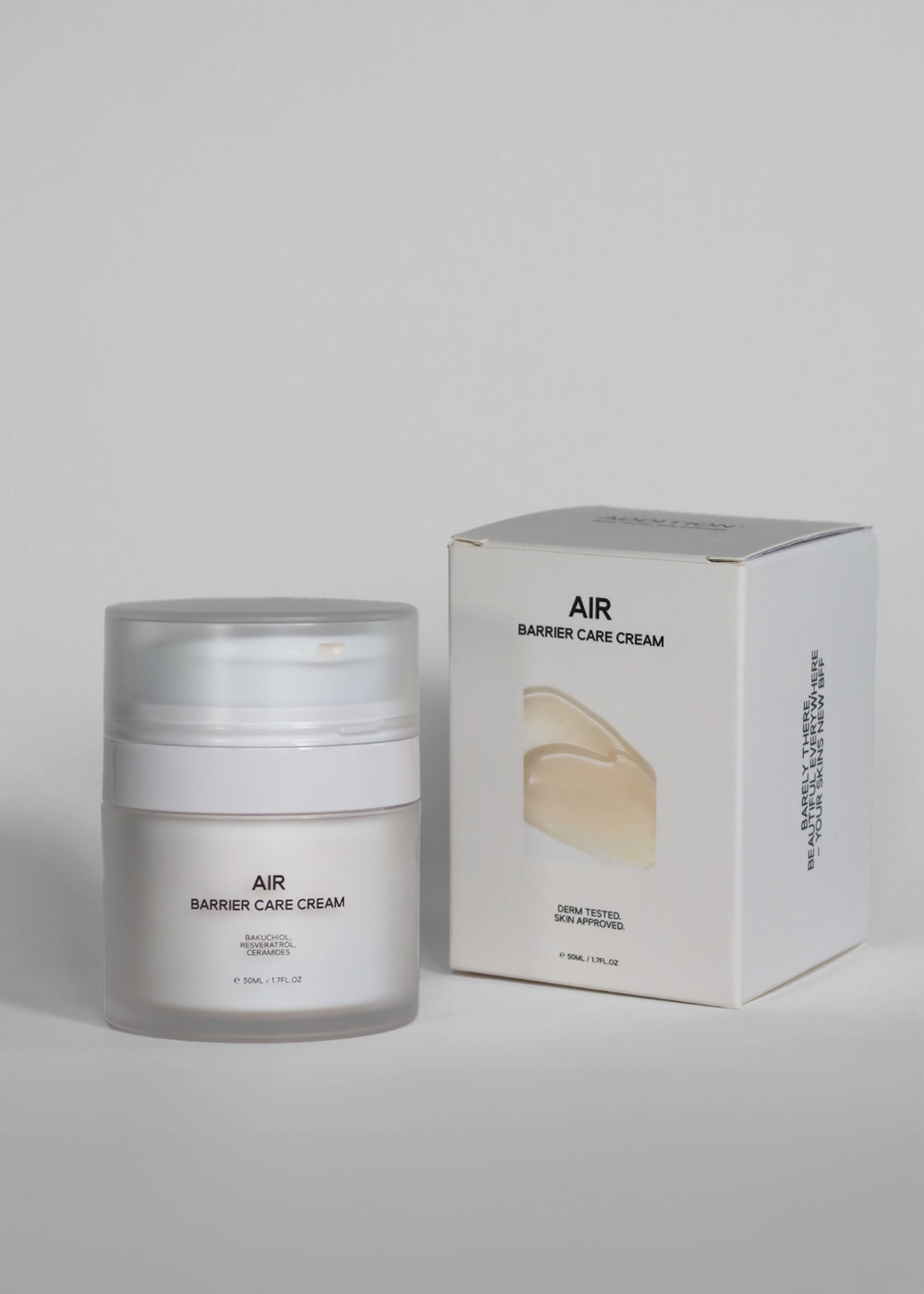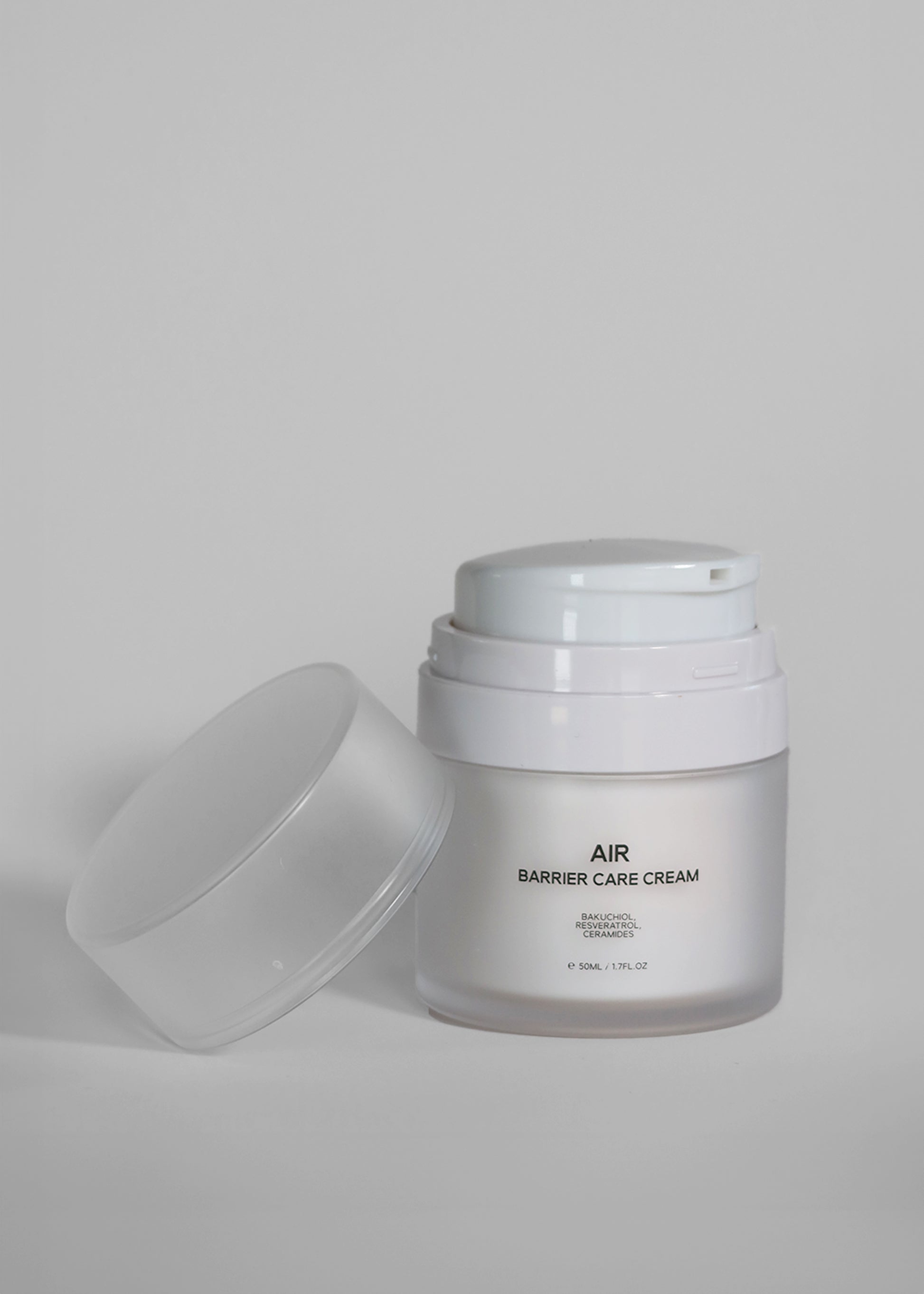 Apply 1-2 pumps of AIR barrier care cream to the face and neck every morning and evening.