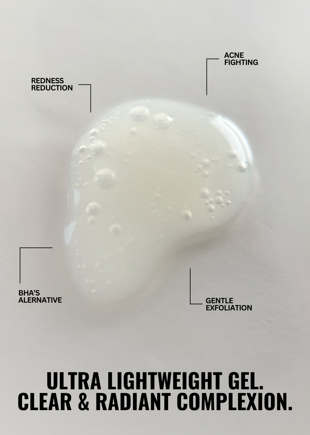 Water, Salix Alba (Willow) Bark Extract, Propanediol, Niacinamide, Mandelic Acid, Aspartic Acid, Gluconolactone, Lactobionic Acid, Pseudoalteromonas Exopolysaccharides, Lactobacillus/Oryza Sativa (Rice) BioFerment, Camellia Sinensis Leaf Extract, Glycerin, Nelumbo Nucifera Flower Extract, Glycolic Acid, Arginine, Panax Ginseng Root Extract, Leuconostoc/Radish Root Ferment Filtrate, Propylene Glycol, Litchi Chinensis Fruit Extract, Ethyl Lauroyl Arginate HCl, Opuntia Tuna Fruit Extract, Zinc PCA, Oryza Sativa (Rice) Extract, Polyacrylate Crosspolymer-6, Sodium Phytate, Capryloyl Glycine, Caprylic Acid, Xanthan Gum